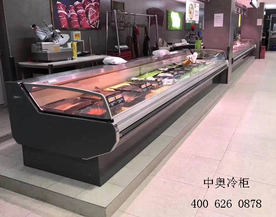 4、外表是用家電彩鋼板,底座架子是采用方鋼材質。使豪華鮮肉柜柜體既持久耐用,又美觀大方。